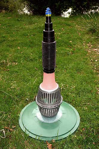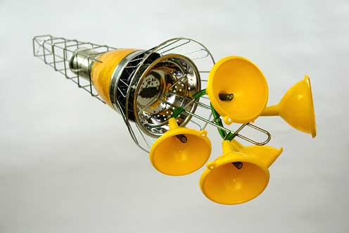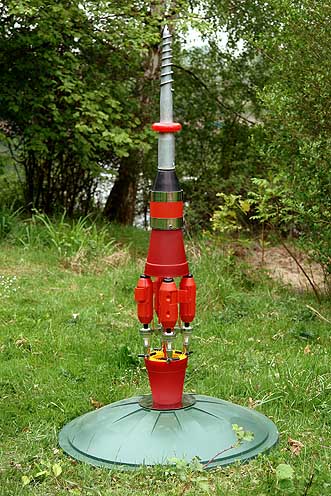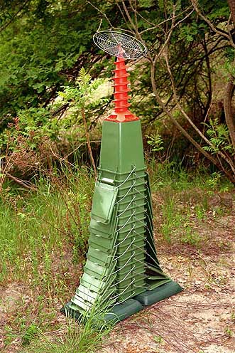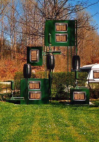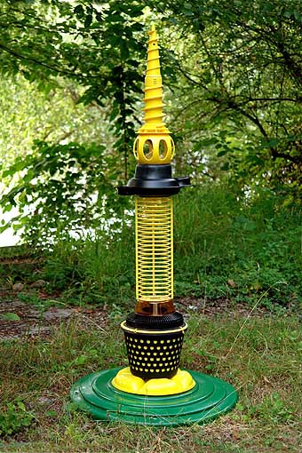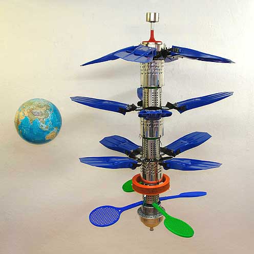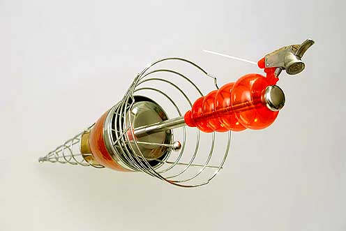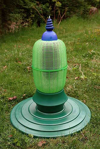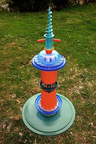 .Rainwatcher: Silvertower, 05, mixmed,127x72x72cm.............Early Bird: Retro 3, 05, mixedmedia, 20x20x42cm .................................................................................................................Rainwatcher: Großer Roter,07, mixmed, 245x95x95cm
