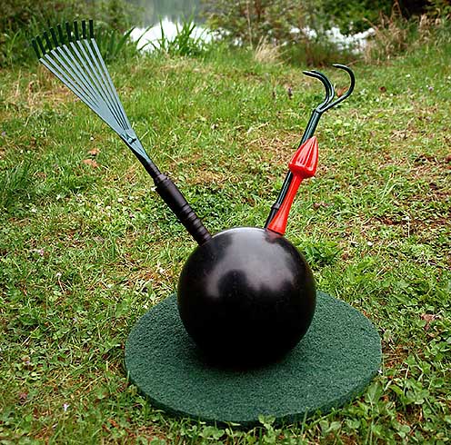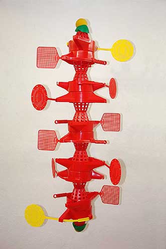 Mr. Moskito, 03, mixmed, 140x50x50cm,rot. ................................Objekt The Green Award, 05, mixmed, 22x13x5cm. .................Early Bird: Majestro, 06, mixedmedia, 25x25x100cm